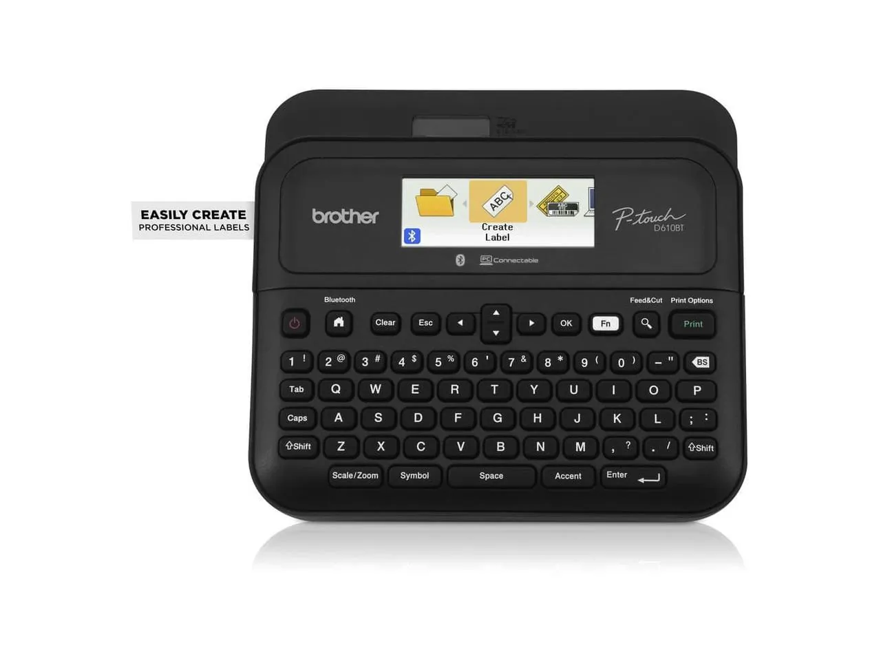 Brother BRTPTD610BTVP Ptouch Business Professional Connected Label Maker With Case Ptd610btvp Ptouch Business Professional Connected Label Maker Ptd610btvp With Bluetoothreg; Connectivity Includes Carry Case And 4m Black Print On Clear Sample Label Tape ~12" 12mm