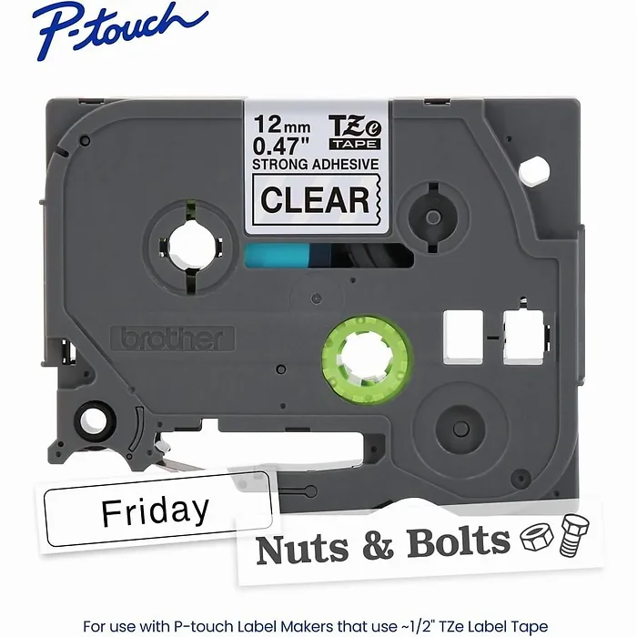 Marketing Information:With twice the adhesive of Brother's standard TZe label tapes, this Genuine TZe Extra-Strength Laminated Label Tape is tough enough for almost any job. Apply with confidence knowing your label will stick there and stay there. A reliable choice for indoor and outdoor applications, confidently use the strong, durable tape in harsh environments and on rough/uneven surfaces. Like all P-touch TZe Label Tapes, it is designed to work seamlessly with variety of Brother P-touch Label Makers and engineered for effortless customization, long-lasting performance and impressive durability. Tape resists abrasion, water, many different chemicals and fading caused by sunlight. Use anywhere that needs extra sticking power like warehouses, schools, stockrooms, production floors and heavy equipment. Label tape is easy to apply and remains affixed to smooth, round and textured surfaces. Print color is black. Background is clear. Sustainable packaging is made with responsibly sourced FSC-certified paper.