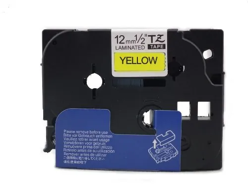 Laminated tape features standard adhesive designed for smooth, flat surfaces like office paper, file folders and binders. These labels stay on under normal indoor and outdoor use, including hot and cold environments. Use with Brother P-touch Labelers using TZ or TZe tapes. They include PT-D200, PT-D210, PT-H100, PT-1010, PT-1090, PT-1230PC, PT-1280, PT-1290, PT-1830, PT-1880, PT-2100, PT-2110, PT-2030, PT-2030AD, PT-2030VP, PT-D400, PT-D400AD, PT-D400VP, PT-D450, PT-H300, PT-H300LI, PT-2430PC, PT-2710, PT-2730, PT-2730VP, PT-D600, PT-1100, PT-1100SB, PT-1120, PT-1130, PT-1160, PT-1170S, PT-1180, PT-1190, PT-1200, PT-18R, PT-300, PT-310, PT-320, PT-1300, PT-1700, PT-1750, PT-1800, PT-1960, PT-330, PT-350, PT-520, PT-540, PT-580C, PT-2200, PT-2210, PT-2300, PT-2310, PT-2400, PT-2410, PT-2500PC, PT-2600, PT-2610, PT-3600, PT-9200DX, PT-9200PC, PT-9400, PT-9500PC and PT-9600. Print color is black. Background is yellow. Tape measures 12mm (8/17") wide x 8m (26-1/5') long.