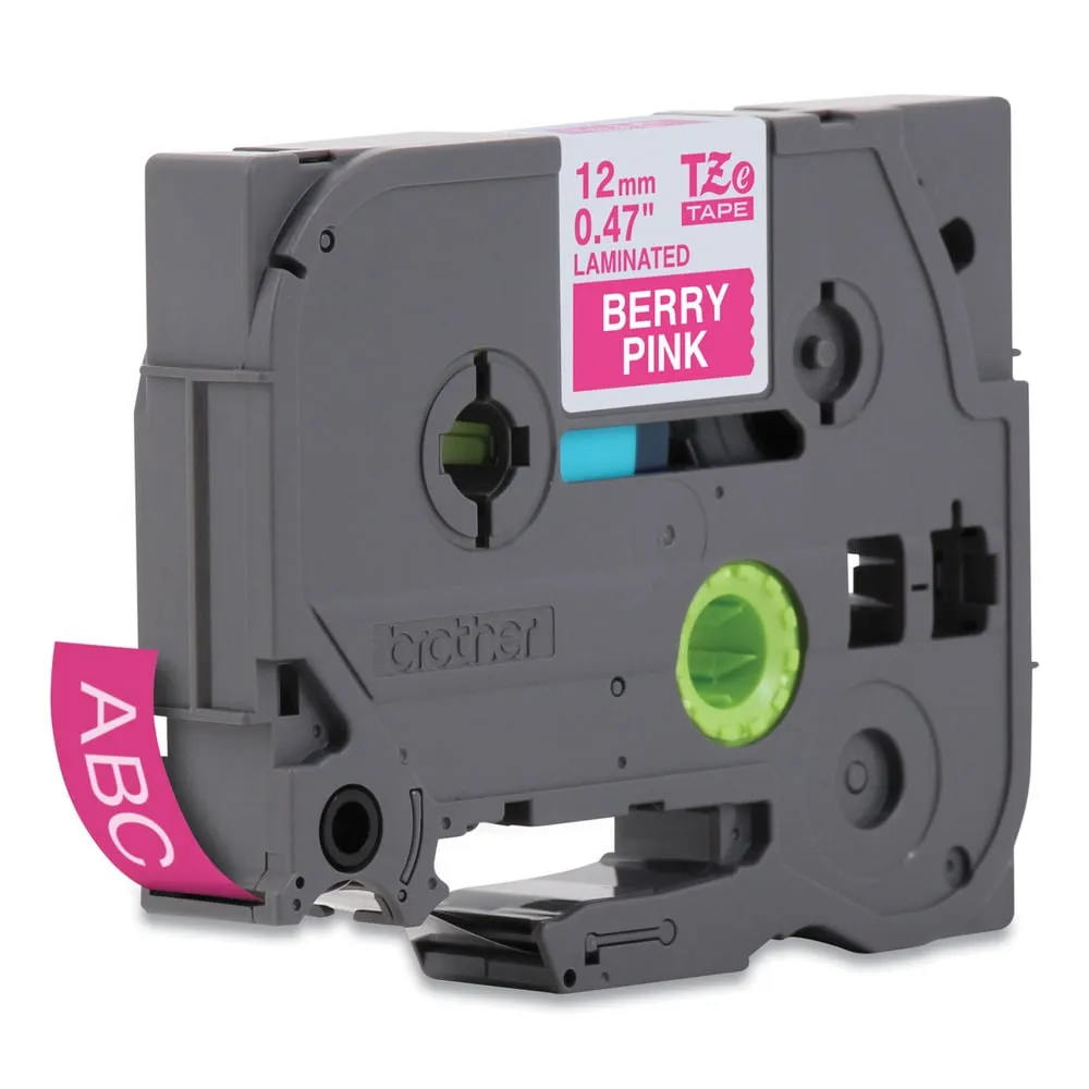 Brother 12mm (1/2") Simply Stylish White on Berry Pink Laminated Tape (5m/16.4') (1/Pkg) For use in all TZ Machines