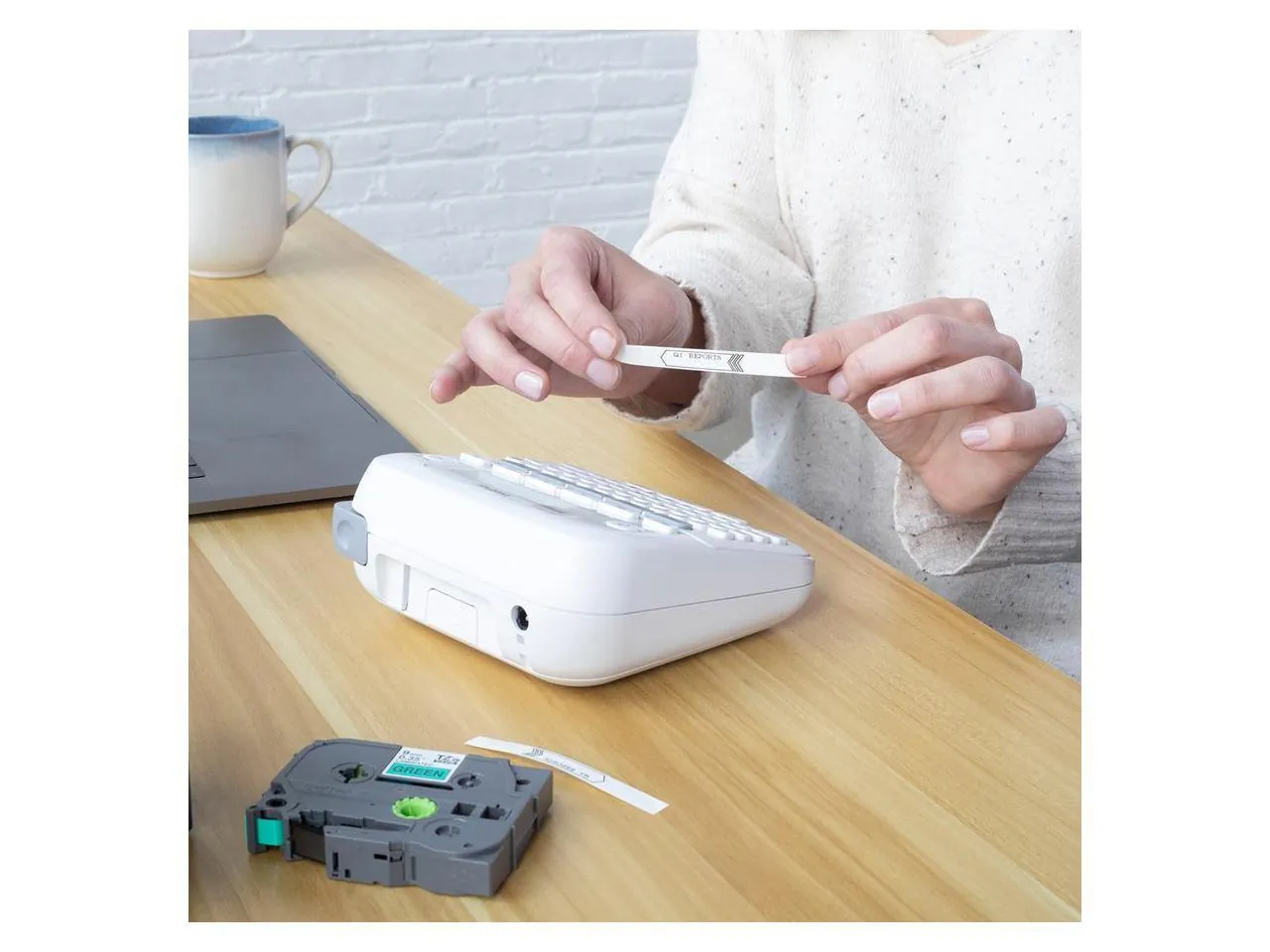 Home/Office Everyday Label Maker is a versatile, easy-to-use, ideal way to organize your home or office. Simply use the QWERTY keyboard and quick, one-touch formatting keys to quickly print your labels. Organize the contents of your desk, cabinets and bookshelves and more using up to approximately 1/2" thick labels. It is also compatible with 12mm, 9mm, 6mm and 3.5mm tapes. Use Genuine Brother TZe Label Tapes for indoor and outdoor versatility. Select between 14 fonts, 11 font styles, 99 frames, 600 symbols and 25 pre-set label templates for professional, unique labels. Preview labels to avoid errors before printing with the 15-character display screen. Labels print with sharp, 180 dpi print resolution. Quickly print labels up to 20mm per second. Memory bank saves up to 30 frequently used labels. Power this desktop labelmaker using AC adapter (not included) or six AAA batteries (none included).