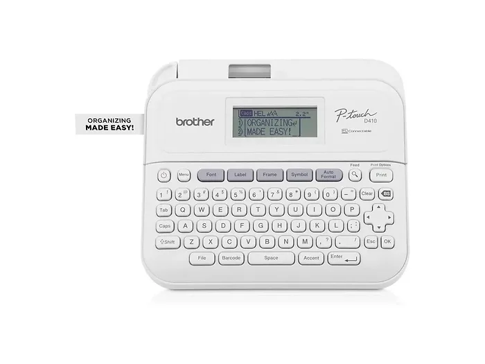 Brother P-touch PT-D410 Home / Office Advanced Label Maker includes P-touch Editor software1 with plenty of customization options. For next level home and business organization, format labels on your computer via included USB cable, or select from pre-designed templates. For use with Brother TZe label tapes up to 3/4" (18mm).