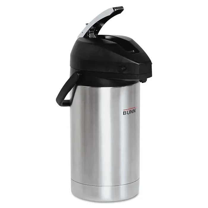 3-liter airpot keeps beverages hot for hours. Removable, brew-through insert offers a quick and easy way to clean the airpot. Stainless steel lining and brushed stainless steel exterior provide a sleek look that's perfect for use in any setting. Lever action easily dispenses your hot beverage.