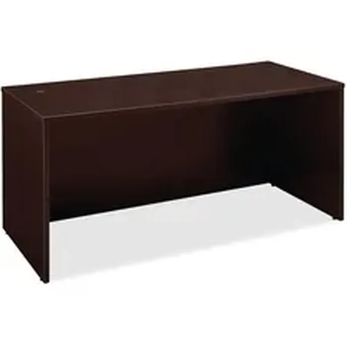 Adaptable to your personal style, this 66" wide desk shell in Mocha Cherry offers classic styling with clean lines and an extended modesty panel. It is constructed with 100 percent thermally fused laminate for durability and superior resistance to scratches and stains. You'll enjoy the integrated wire management located within both desktop and leg grommets to conceal cables and keep your desk area uncluttered. Configure with the Bush Business Furniture Series C Collection 60" wide hutch and a left/right desk return or use as a standalone desk component in a limited space. Spacious design includes room for two-drawer or three-drawer mobile pedestals (sold separately) and can be customized with accessories such as a keyboard tray (sold separately) for convenience. Compensate for uneven floor surfaces with adjustable levelers.