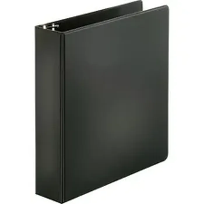 Basic round-ring binder features two triggers on the ring mechanism that provide easy access to your documents. Back-mounted metal rings allow pages to lie flat. 2" capacity holds up to 475 sheets. Clear pockets inside front and back covers offer extra document storage with a 30-sheet capacity for each pocket. Design also features a sturdy chipboard core and exposed rivets. Three-ring binder is made of polypropylene.