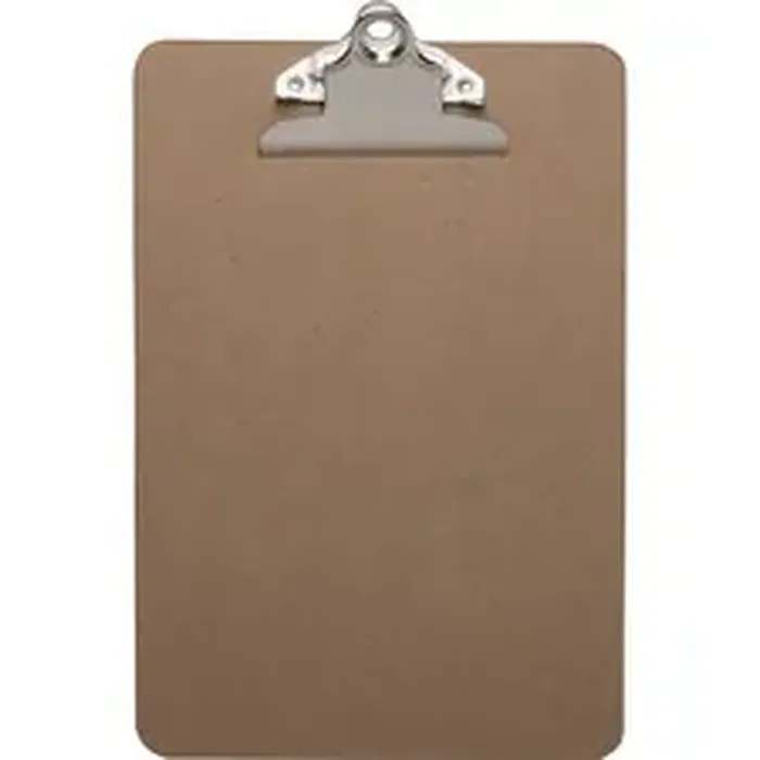 Clipboard allows you to write in comfort without a desk. Secure your papers and small forms with the stainless steel clip. Clipboard offers a smooth writing surface on both sides and is made of 1/8" thick hardboard.