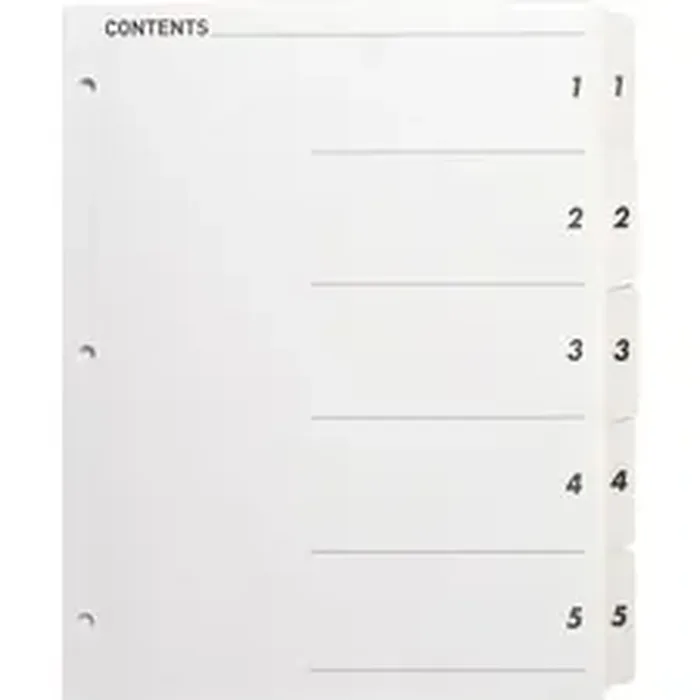 Business BSN 05852 Table Of Content Quick Index Dividers Printed Tabs Digit 15 5 Tabsset 8.5 Divider Width X 11 Divider Length 3 Hole Punched White Divider White Mylar Tabs 5 Set