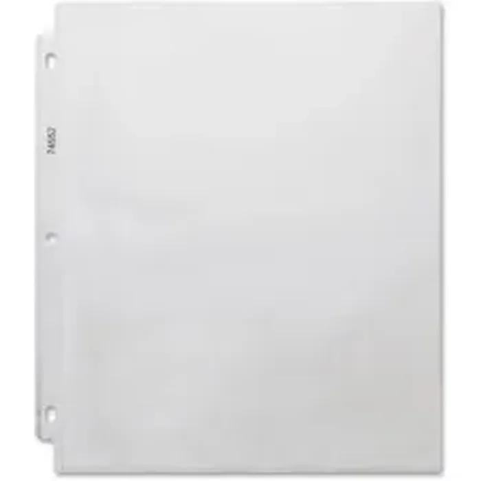 Durable, top-loading sheet protectors hold letter-size inserts without punching. Printed materials do not stick or lift off this specially formulated polypropylene material. Heavyweight design features a reinforced strip at binding edge and three-hole punched side.