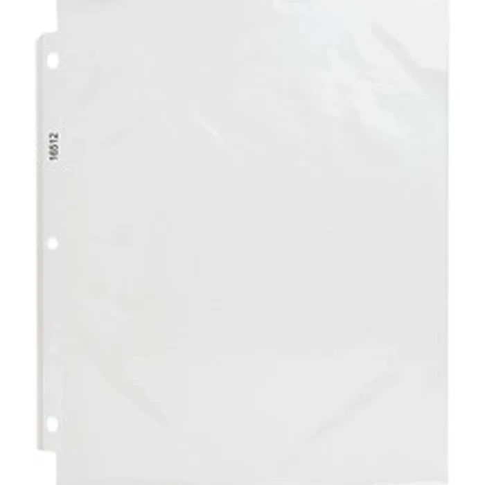 Durable, top-loading sheet protectors hold letter-size inserts without punching. Printed materials do not stick or lift off this specially formulated polypropylene material. Design features a reinforced strip at binding edge and three-hole punched sides. Die-cut corners on ring side allow heavyweight pages to turn freely. Oversized ring binders and indexes are sold separately.