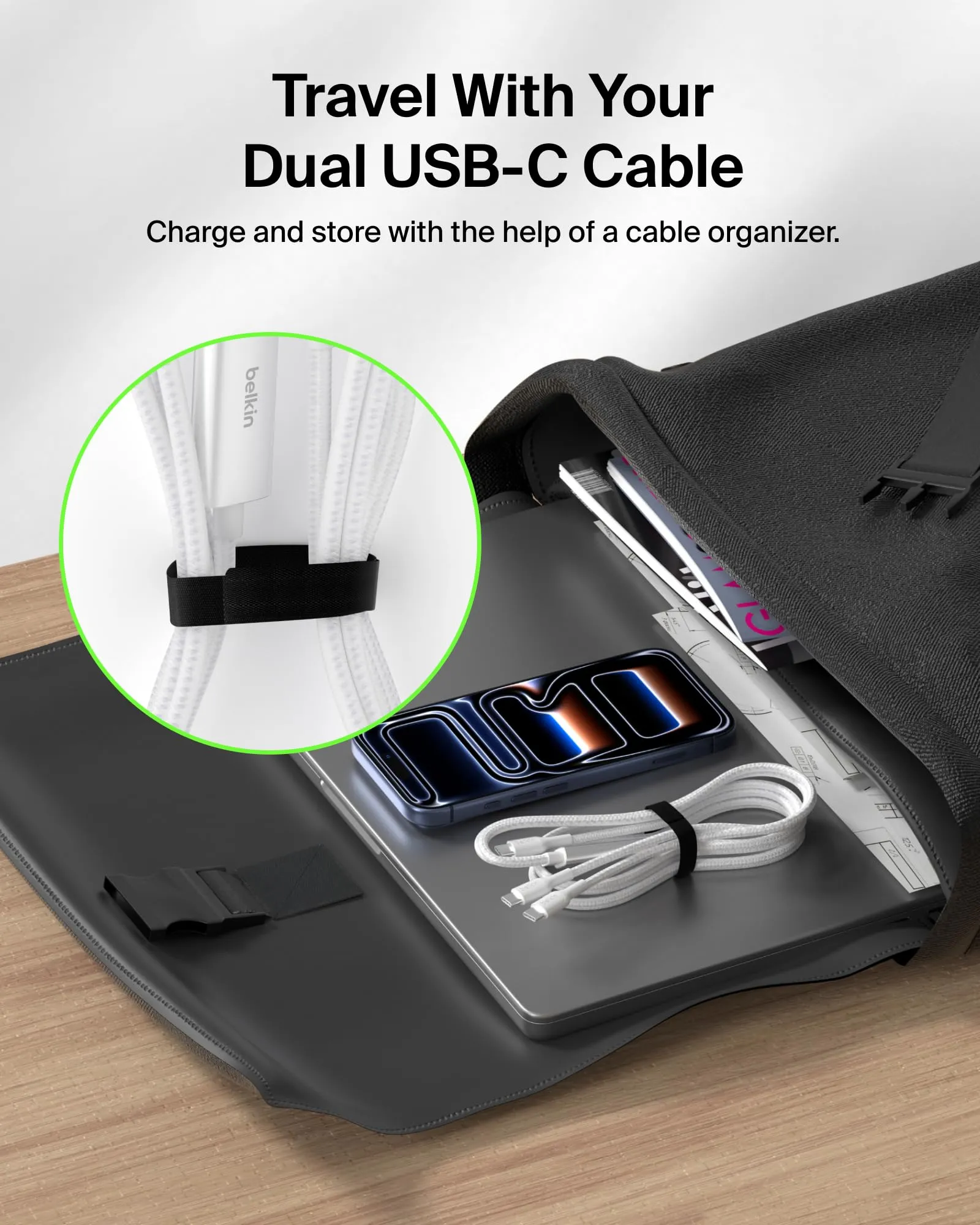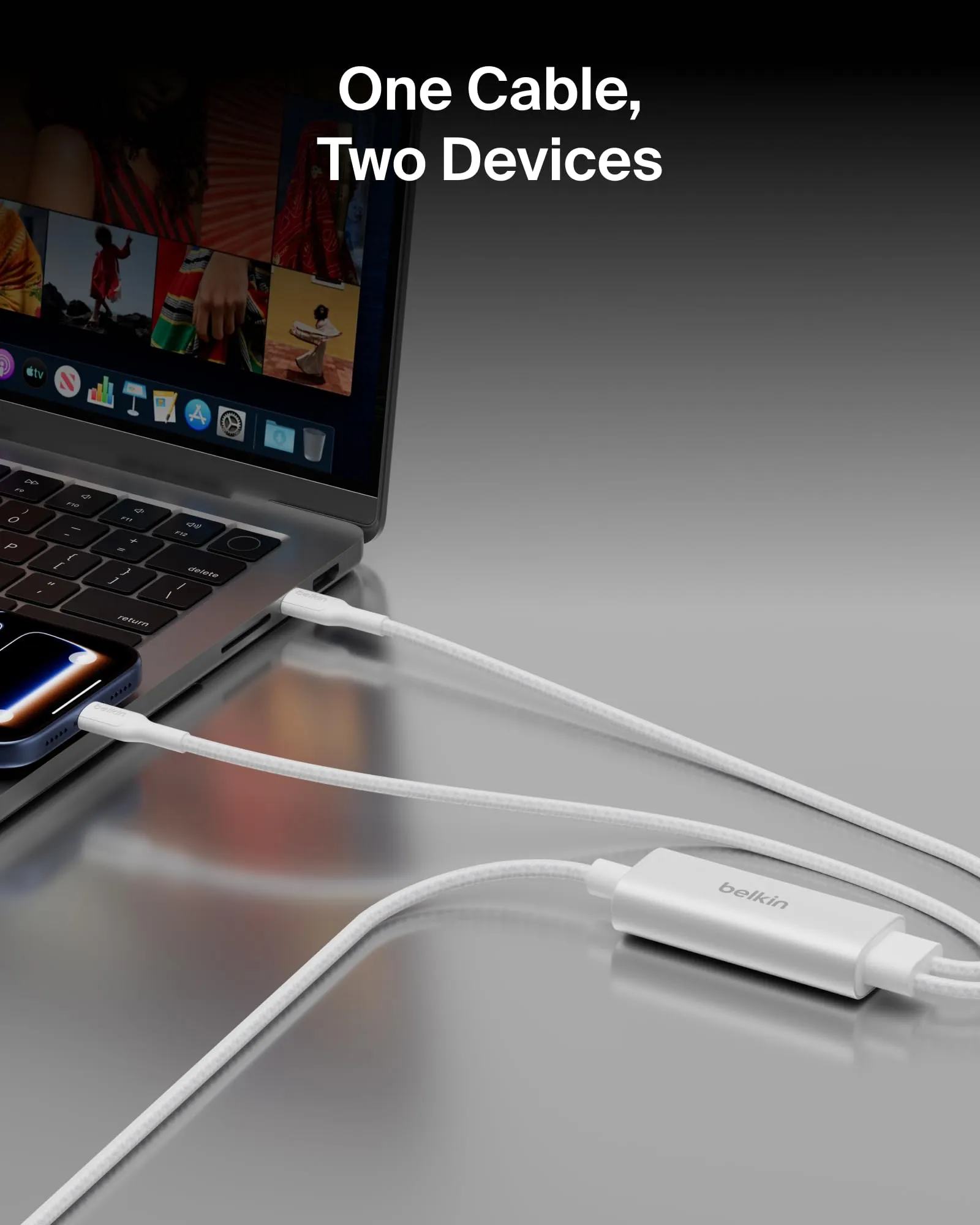 Belkin CAC004FQ1.5MWH C C Cbl 140w 2.0 Braided Pcr 1.5m White Smart Power Sharing Distributes P