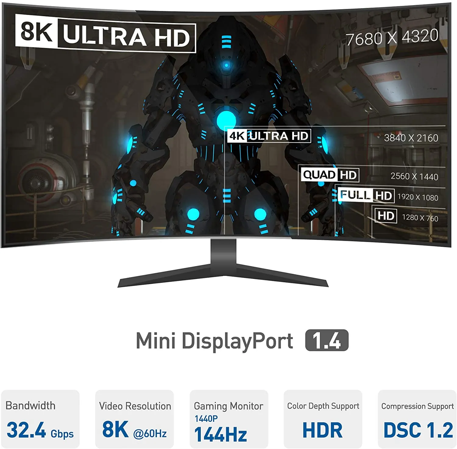 - Supports 8K video resolution up to 60Hz