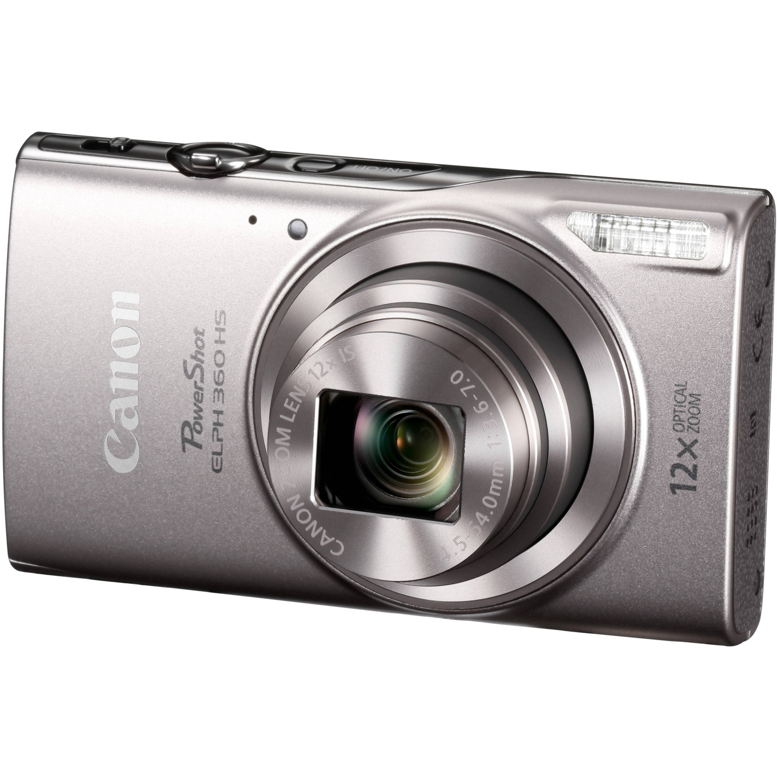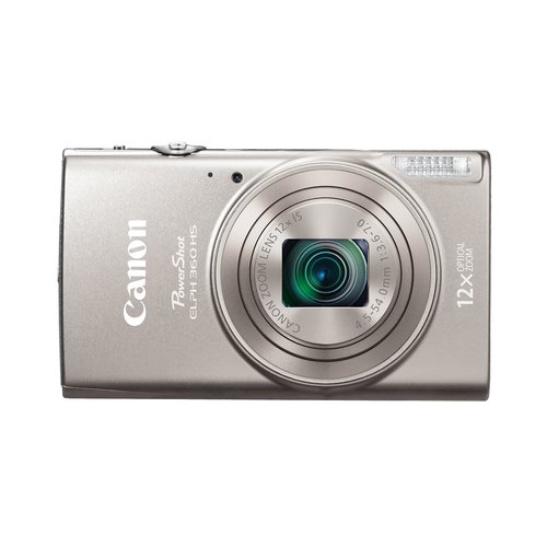 Combining high-resolution imaging with a versatile feature-set, the silver PowerShot ELPH 360 HS Digital Camera from Canon is a sleek point-and-shoot featuring a 20.2MP 1/2.3" CMOS sensor and DIGIC 4+ image processor. The sensor and processor combination avails sensitivity to ISO 3200 and notable image quality, as well as 7.2 fps continuous shooting, to suit working in a variety of conditions, and, in addition to stills, also enables full HD 1080p video recording at 30 fps. A 12x optical zoom lens provides a 25-300mm equivalent focal length range and an Intelligent IS image stabilization system helps to minimize the appearance of camera shake for sharper handheld imagery. For composing imagery and reviewing your photos and movies, a large 3.0" 461k-dot LCD is featured on the back of the camera and built-in Wi-Fi with NFC allows you to wirelessly share images to a linked smartphone or tablet. Additionally, the ELPH 360 HS also features a range of creative features for compiling videos and stills or producing creative works in-camera, including Hybrid Auto, Creative Shot, and Story Highlights.
