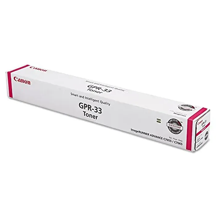 GPR-33 magenta toner cartridge is designed for use in Canon imageRunner Advance C7055, C7065, C7260 and C7270. Toner produces quality results for a professional look. High-capacity cartridge provides quick, clean replacement. Bottle cartridge yields approximately 52,000 pages.