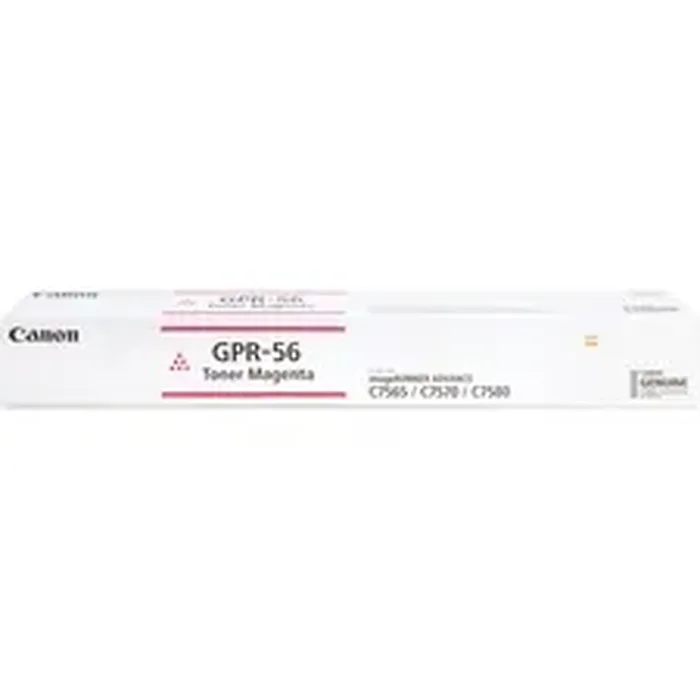 GPR-56 toner bottle is designed for use with Canon imageRunner Advance C7580, C7580i, C7570, C7570i, C7565 and C7565i. Consistent performance meets high-quality output. Easy-to-install cartridge saves time and boosts productivity. Bottle cartridge yields approximately 66,500 pages.