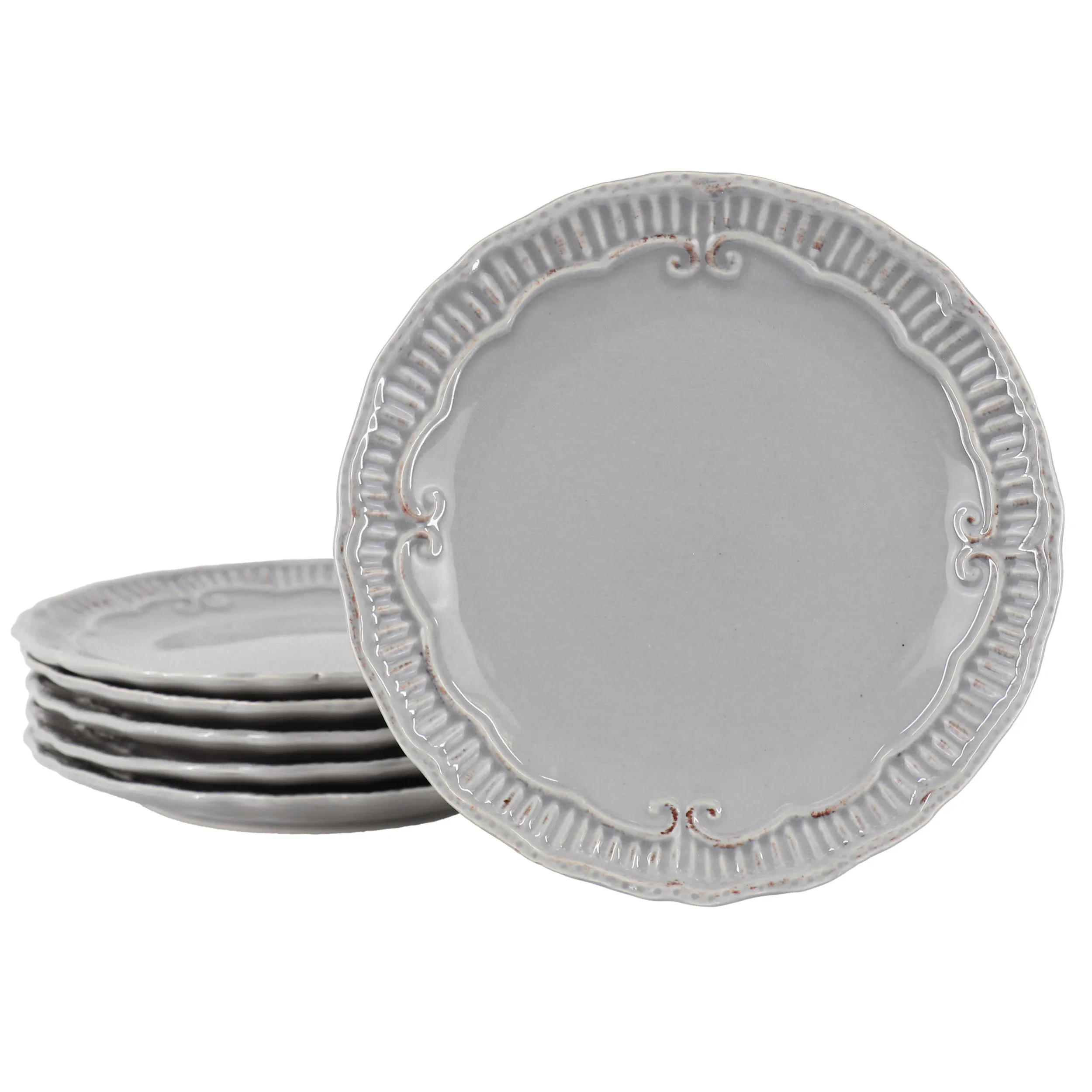 Old 114416.01 Capri Stoneware Embossed Dessert Plate Set 6 Pieces