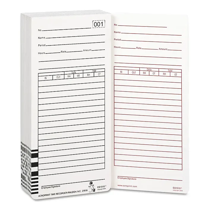 Time Card For Es1000 Electronic Totalizing Payroll Recorder, 100/pack