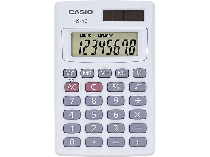 The Casio HS-4G Mini Solar Handheld Calculator is an eco-friendly calculator that utilizes solar power, eliminating the need for batteries. It features an 8-digit display (with 16-digit approximations), making it perfect for quick calculations on the go.