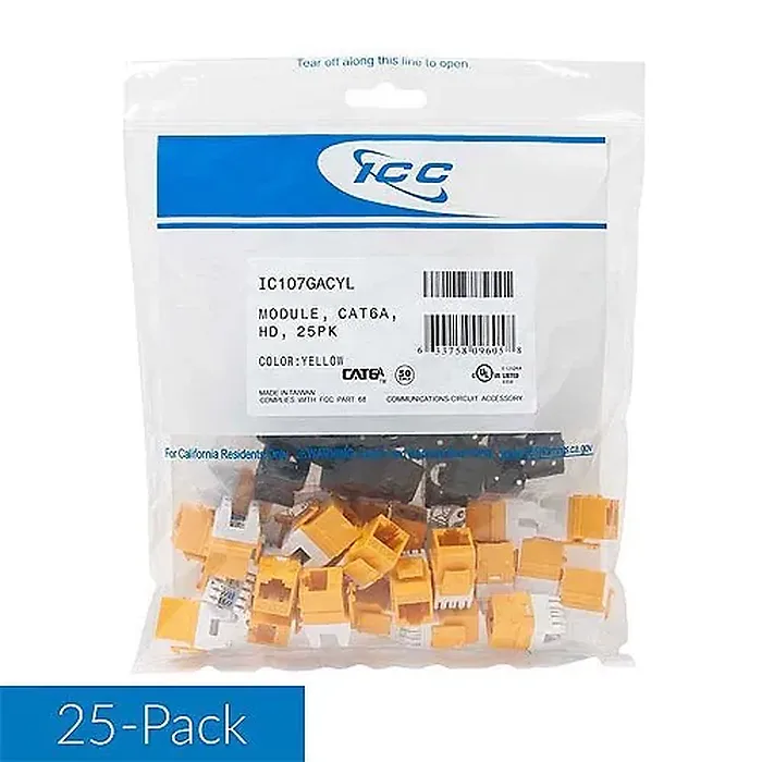 Cablesys ICC-IC107GACYL Cat6a Highdensity Connectors 25 Pack Yellow