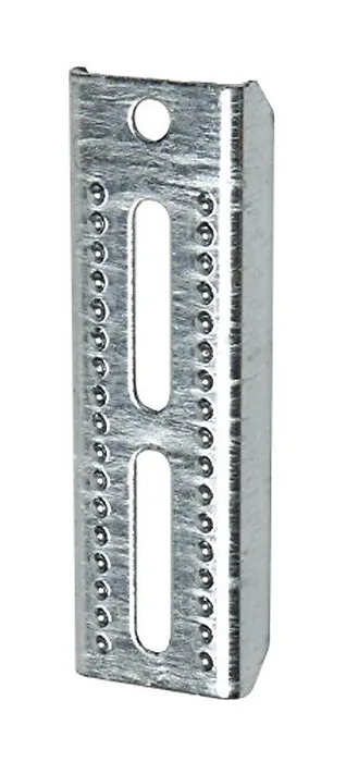 - Bolster bracket: 12 bracket, 11 gauge material, 2-1/2 wide, slots 1/2 wide, swivel hole 1/2 dia., slots 4-3/4