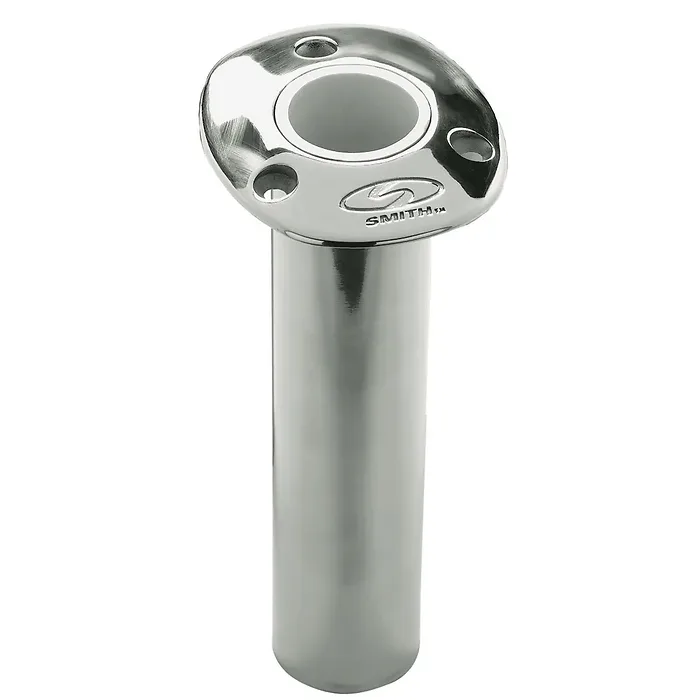 Flush Mount Rod Holder - 0 Degree & 9" Depth - Stainless Steel - Cast Bottom - White Vinyl Liner