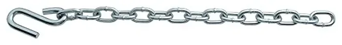 Zinc-plated, proof-coil chain features strong, heat-treated S-hooks to keep your trailer from separating from the tow vehicle if the coupler becomes unhitched. Remember to attach the open end of the hook up through the hole, not down, to prevent it from bouncing out. 24L. Sold in pairs. 7600lb Capacity, 8/0 chain.