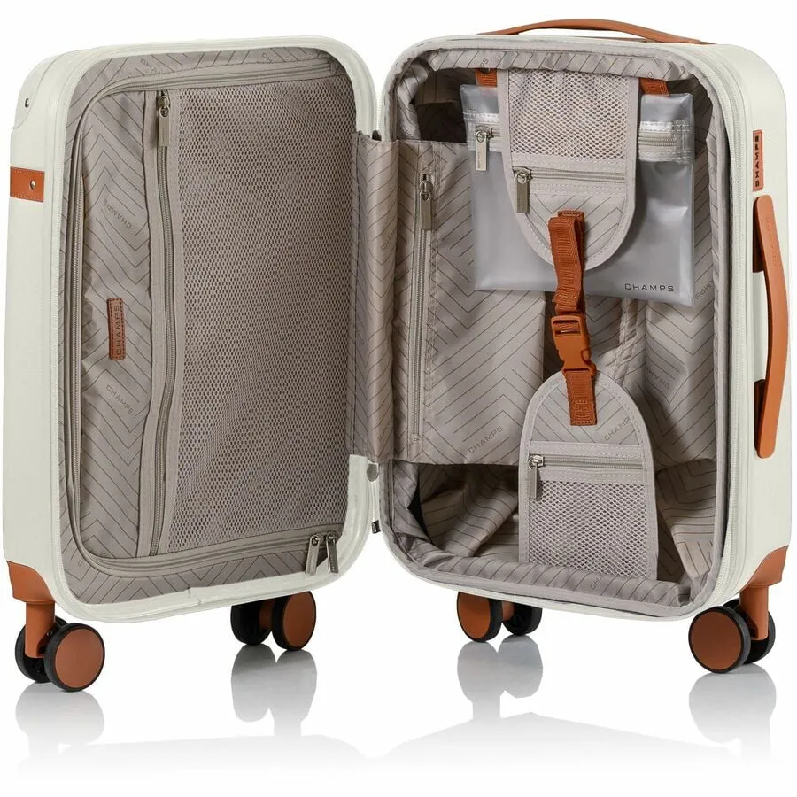 Introducing the Vintage Collection from CHAMPS, a premium 2-piece travel set crafted to meet the demands of modern travelers. With expansion capabilities, TSA locks, and an integrated charging system, this collection redefines convenience and versatility for any vacation.