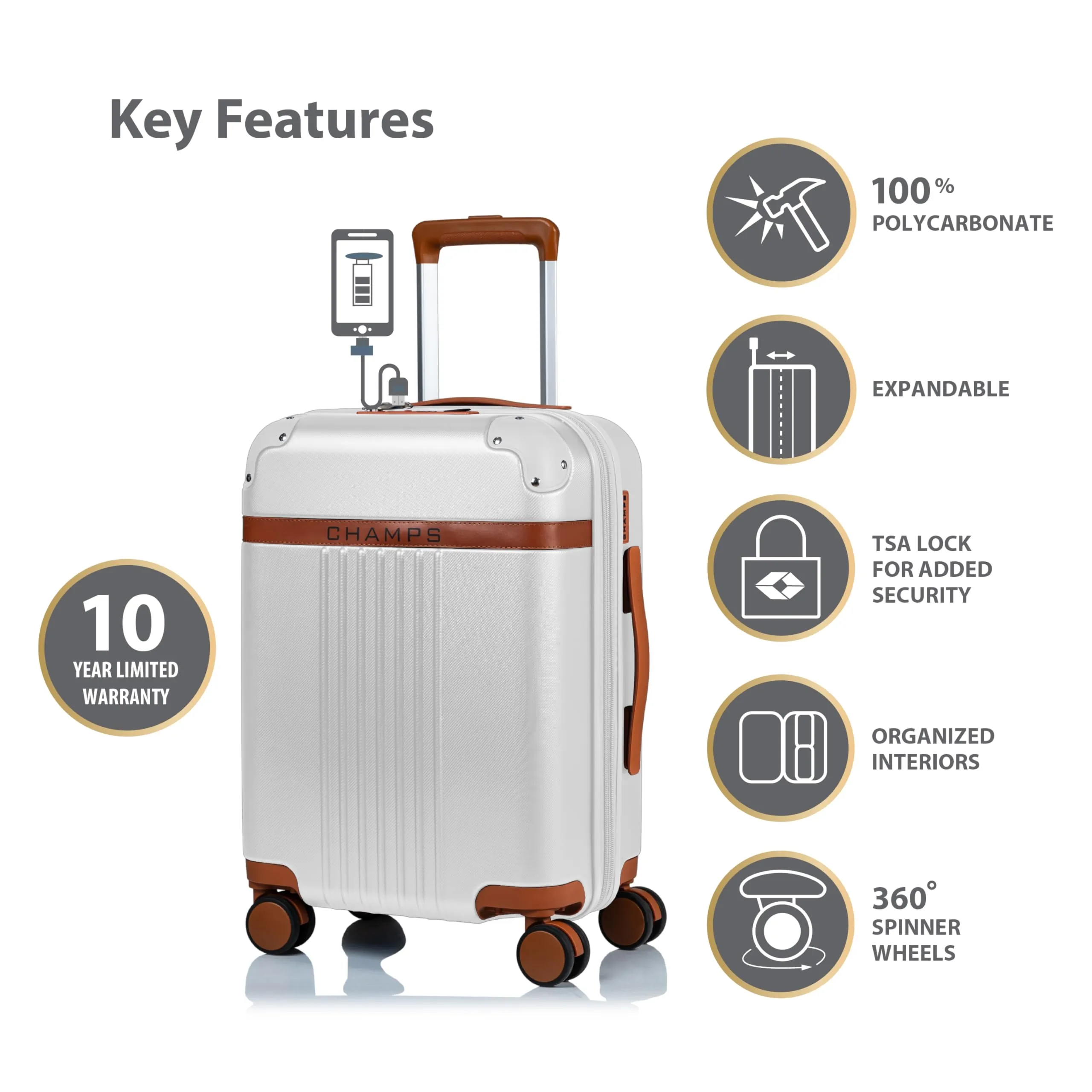 Parfums S1016C-IVORY Champs Vintage Carry On Bag With Usb Charging Port