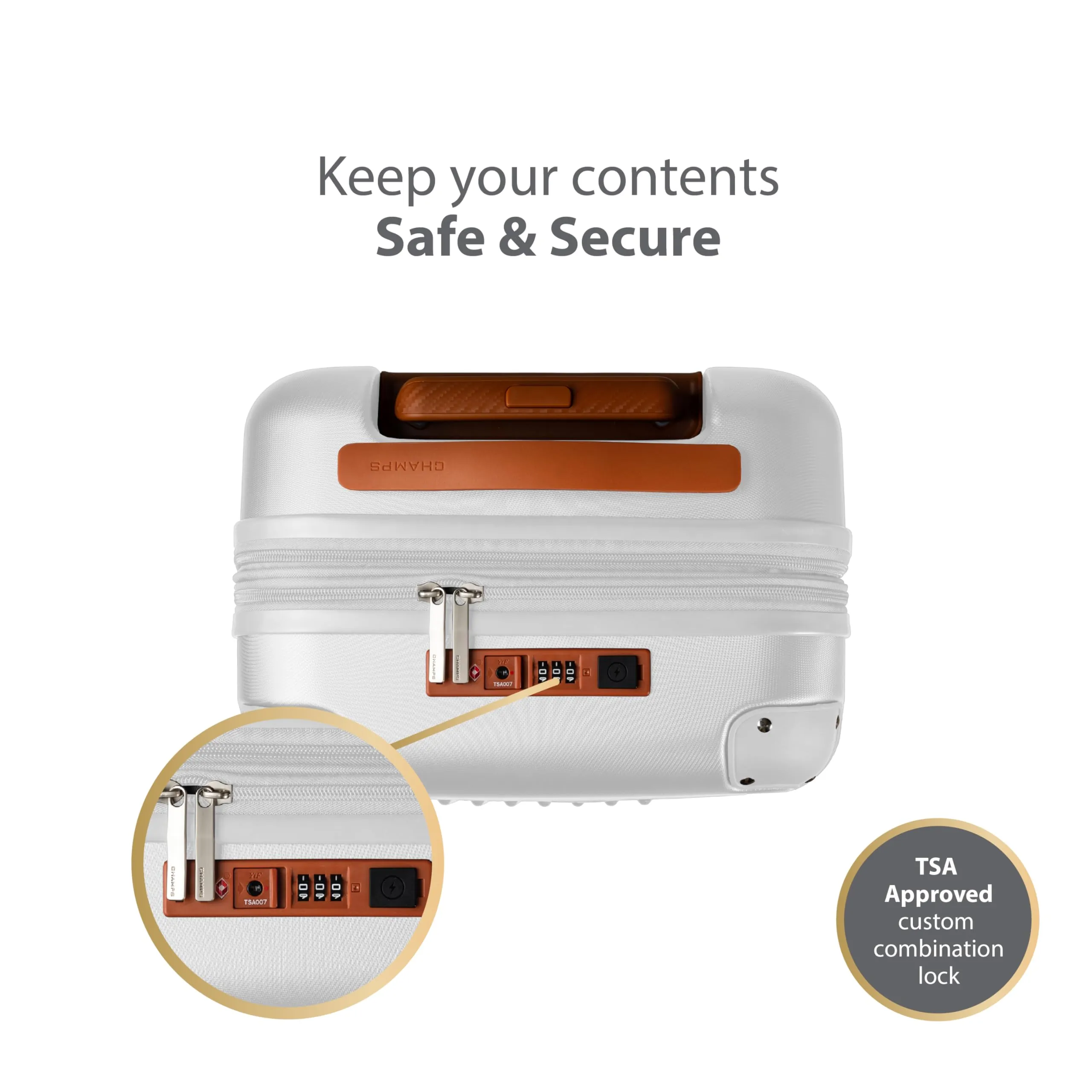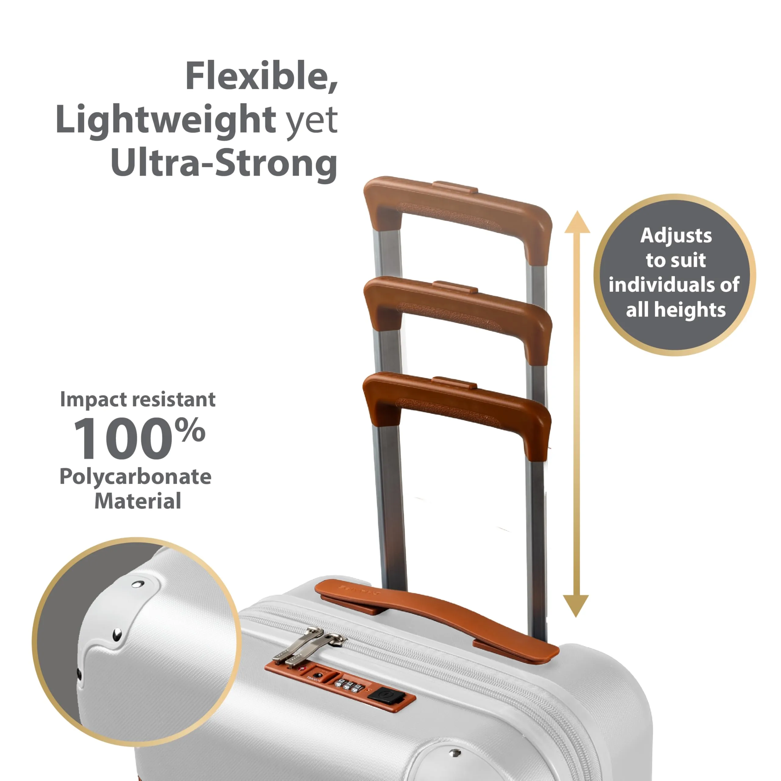 Crafted from premium lightweight polycarbonate, this carry on is both stunning and durable. Enjoy seamless navigation through airports with its smooth spinner wheels, allowing you to glide effortlessly over any surface. Stay organized with the thoughtfully designed interior featuring numerous pockets and a removable toiletry bag.