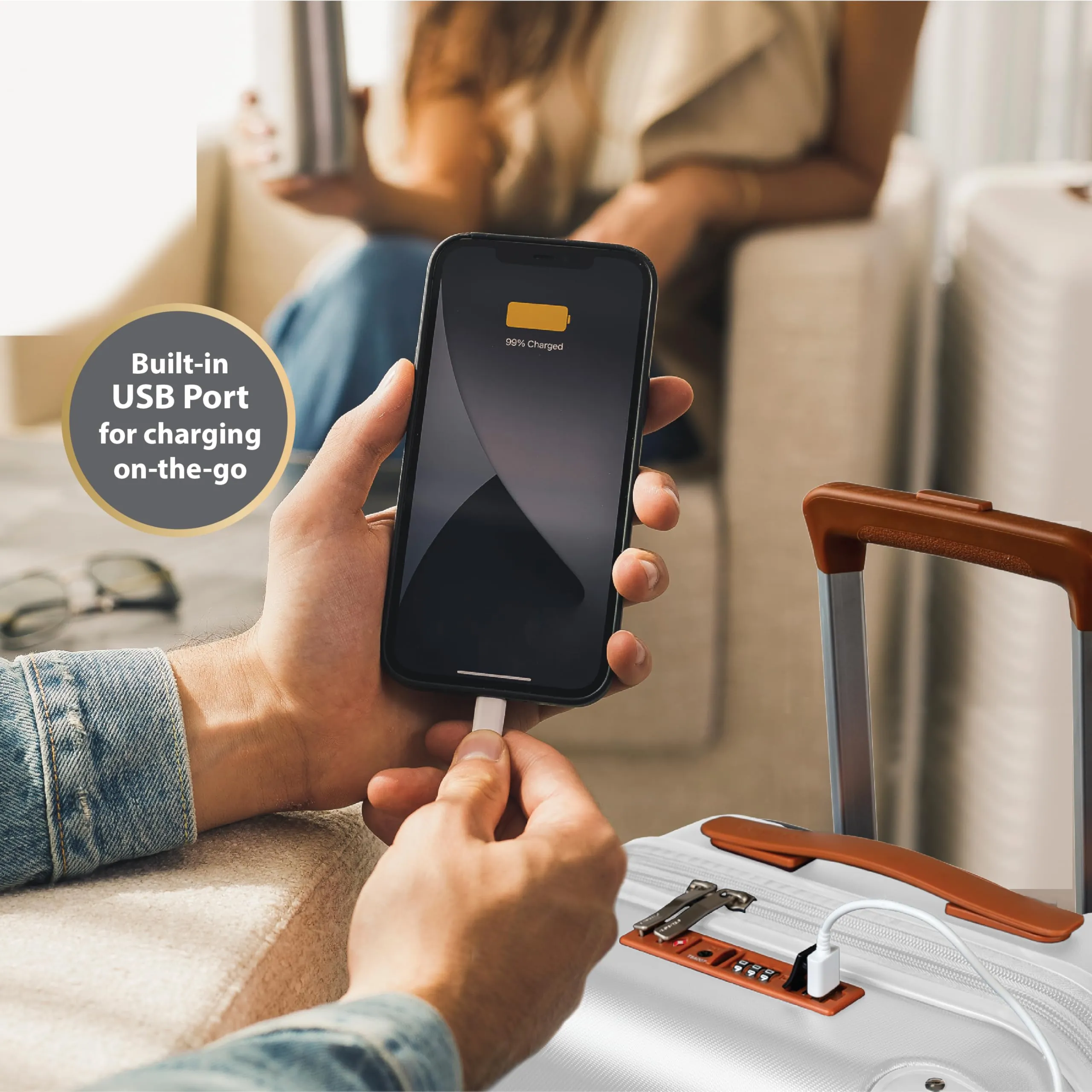The built-in USB port ensures you can charge your devices on the go (cable included, power bank not included), while the recessed TSA-approved lock keeps your belongings safe and secure. With an expansion feature for extra packing capacity and a well-structured 50/50 packing layout, this carry on has everything you need and more.