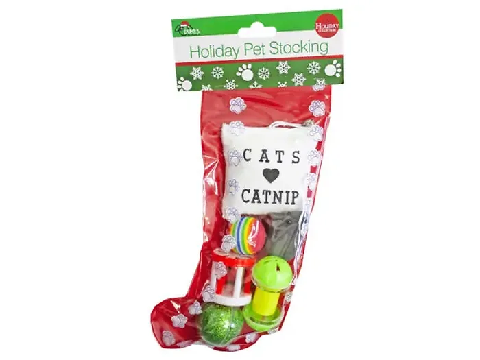 Bulk SA679 Christmas Cat Stocking With 6 Fun Toys For Feline Friends