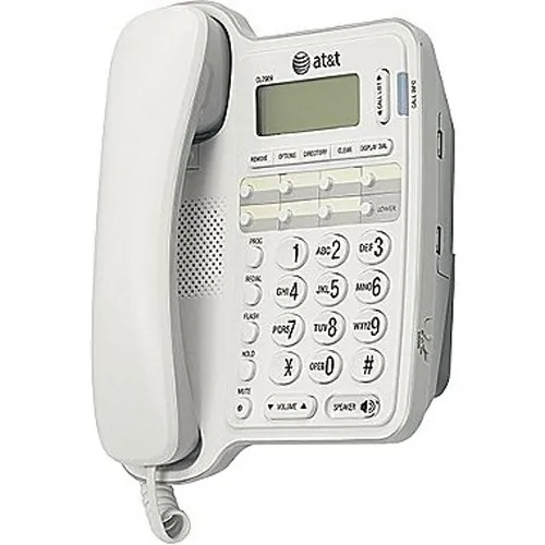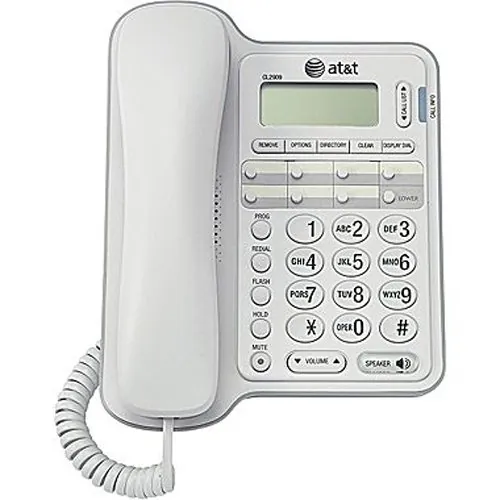 - With the handy AT&T CL2909 Corded Phone with Caller ID, you can easily take and make calls anywhere at home. Packed with useful features, it comes with a speakerphone for hands-free operation and call waiting functions. - This AT&T telephone has a 14-number memory for frequently dialed numbers. - It has hold, redial, flash and mute options that can be helpful for business and home use. - This corded telephone with speakerphone features setup menus in English, Spanish and French. - It also includes caller ID history for up to 65 names and telephone numbers that allows for the tracking of incoming calls. - The AT&T CL2909 Corded Phone with Caller ID also has a large easy-to-read display. This item does not need AC power to operate.