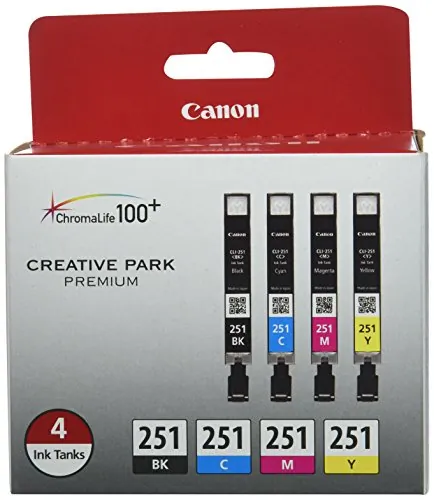 CLI-251 value pack features black, cyan, magenta and yellow colors that deliver improved color, a wider color gamut and better color fastness. Print only with genuine Canon ink and photo paper to achieve optimum results through the ChromaLife100 Plus System. Cartridges are designed for use in Canon Pixma iP7220, iP8720, IX6820, MG5420, MG5520, MG5620, MG6320, MG7120 and MX922.