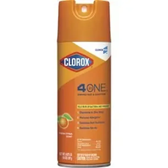 To help keep living and working environments healthy, it's important to clean and disinfect multiple surfaces, a process that once required multiple products. Clorox 4-in-1 Disinfectant and Sanitizer lets you disinfect, sanitize and reduce allergens with a single, all-purpose aerosol spray. This powerful cleaner disinfects hard surfaces with 24 EPA-registered kill claims and sanitizes soft surfaces in as little as 30 seconds. It meets EPA criteria for use against SARS-CoV-2, the virus that causes COVID-19. This disinfecting spray even kills odor-causing bacteria in the air and leaves behind a refreshing scent. On top of that, it reduces pet dander, dust mite matter and cockroach matter allergens that can trigger allergies and asthma. Disinfectant/sanitizer is ideal for offices, daycare centers, schools, hotels, restaurants and other commercial facilities. No precleaning is required.