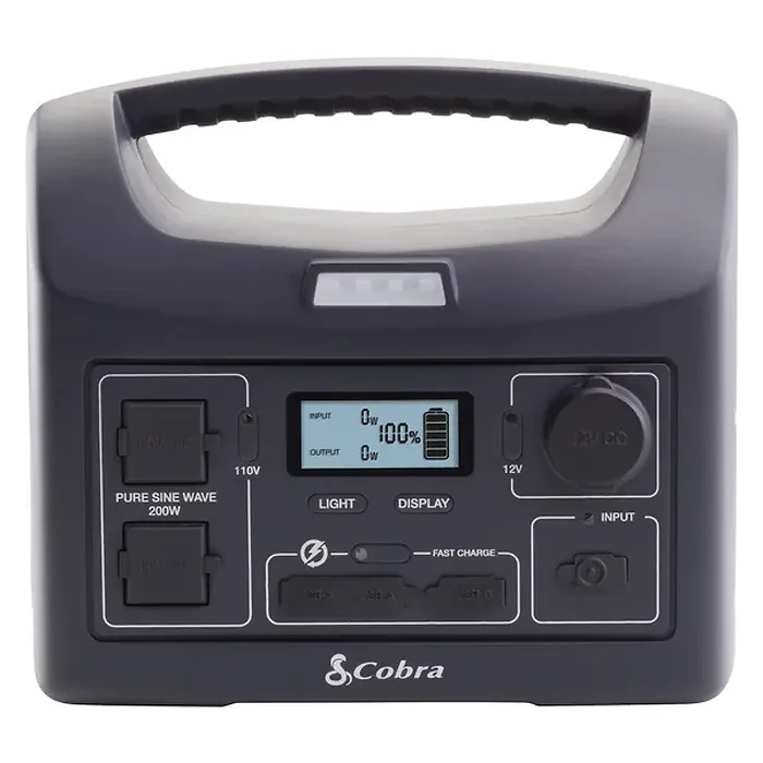 Cobra CPPS244W 200-Watt Portable Power Station with 2 AC Outlets, 12-Volt Outlet, and 3 USB Ports