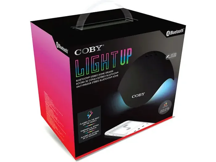 Experience music like never before with the Coby Colorful LED Dome Bluetooth Speakers in Black. These captivating dome speakers flash vibrant blue, red, and green lights that pulse to the beat of your favorite tunes. Equipped with an intuitive power switch and a Light ON/OFF feature, you have complete control over your light show. The speakers connect via Bluetooth for seamless audio streaming, and they come with a micro USB port for easy charging.