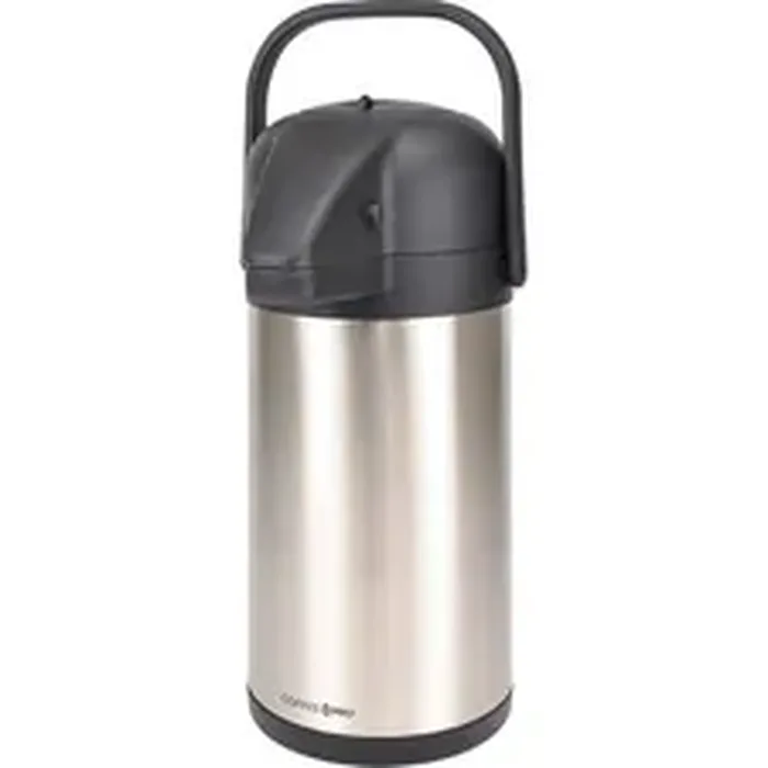 Vacuum-insulated airpot stores and serves hot coffee for hours. Capacity is 2.2 Liter (75 oz.). Airpot features stainless steel construction, locking lid, pump action, carry handle and brew-through steam. Airpot is designed for use with Coffee Pro 2.2 Liter Stainless Steel Brewer and other airpot brewers. Commercial rating UL and cUL listed.