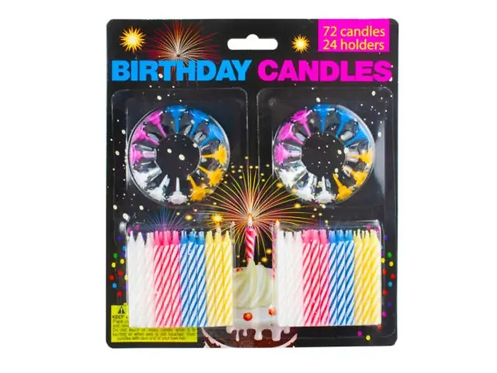 - Includes 72 colorful birthday candles