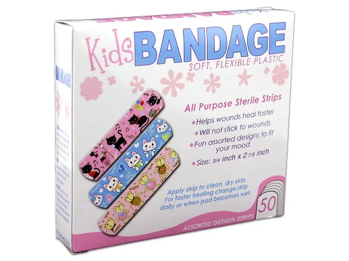 - 50 assorted bandages in fun and colorful designs