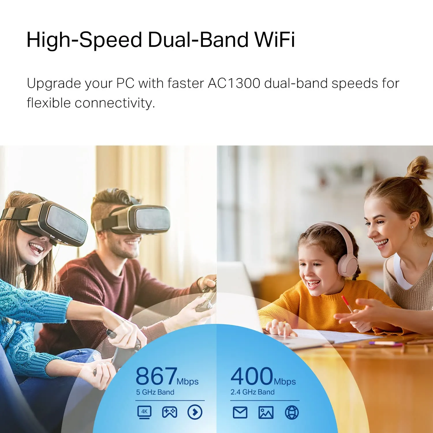 - High-speed wireless connectivity up to 1300Mbps