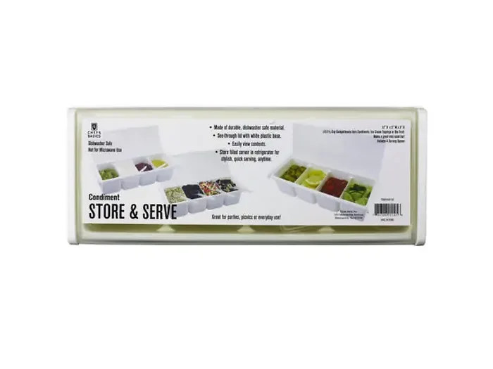 The Condiment Store & Serve is the ultimate solution for organizing and dispensing your favorite sauces, dressings, and dips. With its sleek design and easy-to-use features, it is perfect for kitchen use, barbecues, and entertaining guests.