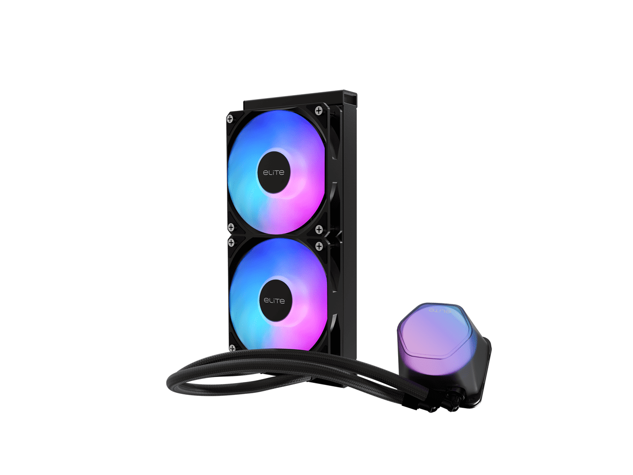 Take your PC build to the next level with the Elite Liquid 240. Designed with a striking hexagonal crystal-clear pump cover, this cooler combines standout aesthetics with top-tier performance. Enjoy hassle-free installation with a tool-free adjustable pump, pre-installed fans, and broad compatibility with both Intel and AMD sockets. Whether you're a first-time builder or an experienced enthusiast, the Elite Liquid series offers premium cooling at an exceptional value. Bullet points: Cool for R9 Ultra 7: Dual Chamber Ceramic Bearing Pump improved Low Friction, Low Noise and Fluid Dynamics directly to the CPU hotspot, for AMD R9 and Intel Ultra7. Unique Hexagon Design: Translucent hexagon pump cover and cap create unique frosted lighting, guaranteed to be a head turner. Daisy-Chained 120mm Fans: Pre-installed daisy-chain fan system simplifies wiring using only a single PWM connector to power all fans. Dynamic PWM Fan: A PWM 4-pin header allows adjustable fan speeds from 600 to 2,100 RPM to balance noise and airflow. Simplify Brackets: Pre-Install brackets simplify installation on AM5 and LGA 1851/1700 platforms. Frosted Blade Design: The frosted blade enhances the dispersion of aRGB lighting, creating a vibrant and customizable luminous effect. Ideal Tubing Length: The 400mm tubing provides flexibility, a hassle-free installation in various chassis configurations.