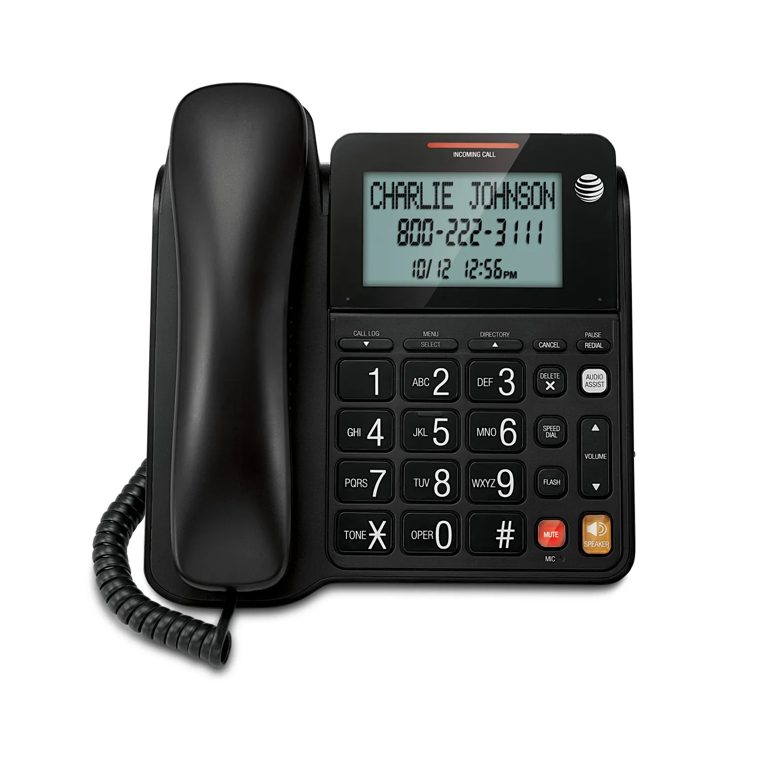 - Simple, corded operation- The telephone works without AC Power. For the Caller ID to function, four AA batteries (not included) are necessary.- Line power mode- Display dial- Mute- Last number redial- Flash- Receiver volume control- Ringer volume control- Table- and wall-mountable- Hearing aid compatible- English/Spanish/French setup menu- Clearspeak® dial-in-base speakerphone- Speakerphone volume control- Line power speakerphone- Caller ID/call waiting- Extra-large tilt display for easy viewing- Extra-large buttons- Visual ringing indicator- Extra loud ringer