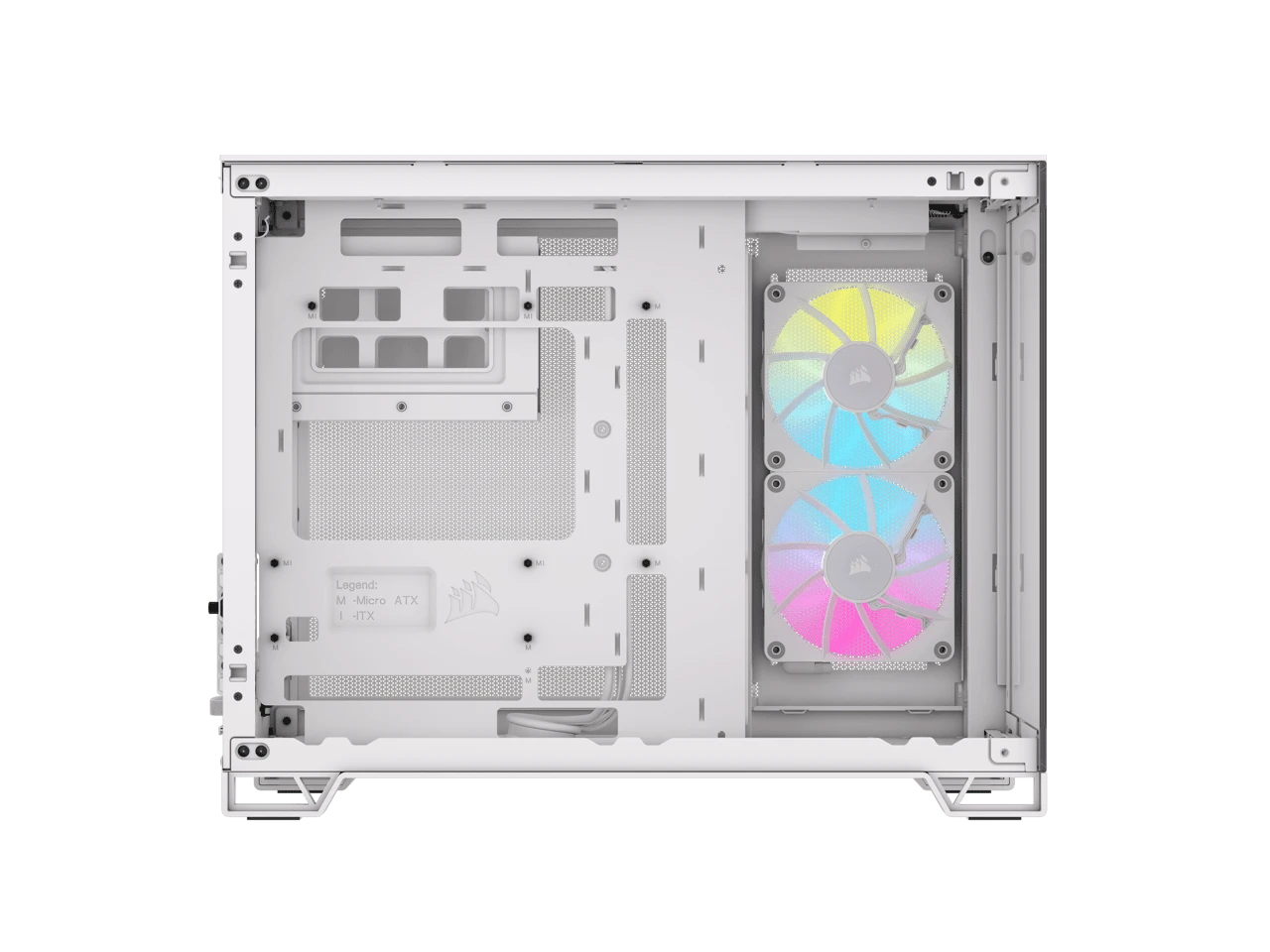 The CORSAIR iCUE LINK 2500X RGB Mid-Tower Dual Chamber PC Case provides a clean and organized view of your SFF PC through dual tempered glass panels, with two pre-installed RX120 RGB fans and an iCUE LINK System Hub to get you started in the revolutionary iCUE LINK ecosystem. Keep the cables out of sight by routing them in the second chamber.