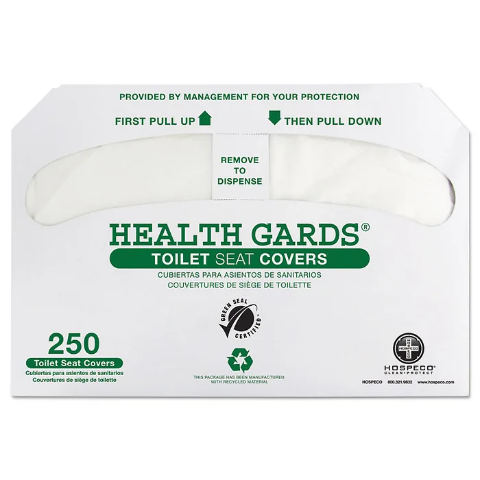 HEALTH GARDS GREEN SEAL RECYCLED TOILET SEAT COVERS, 14.75 X 16.5, WHITE, 250/PACK, 4 PACKS/CARTON