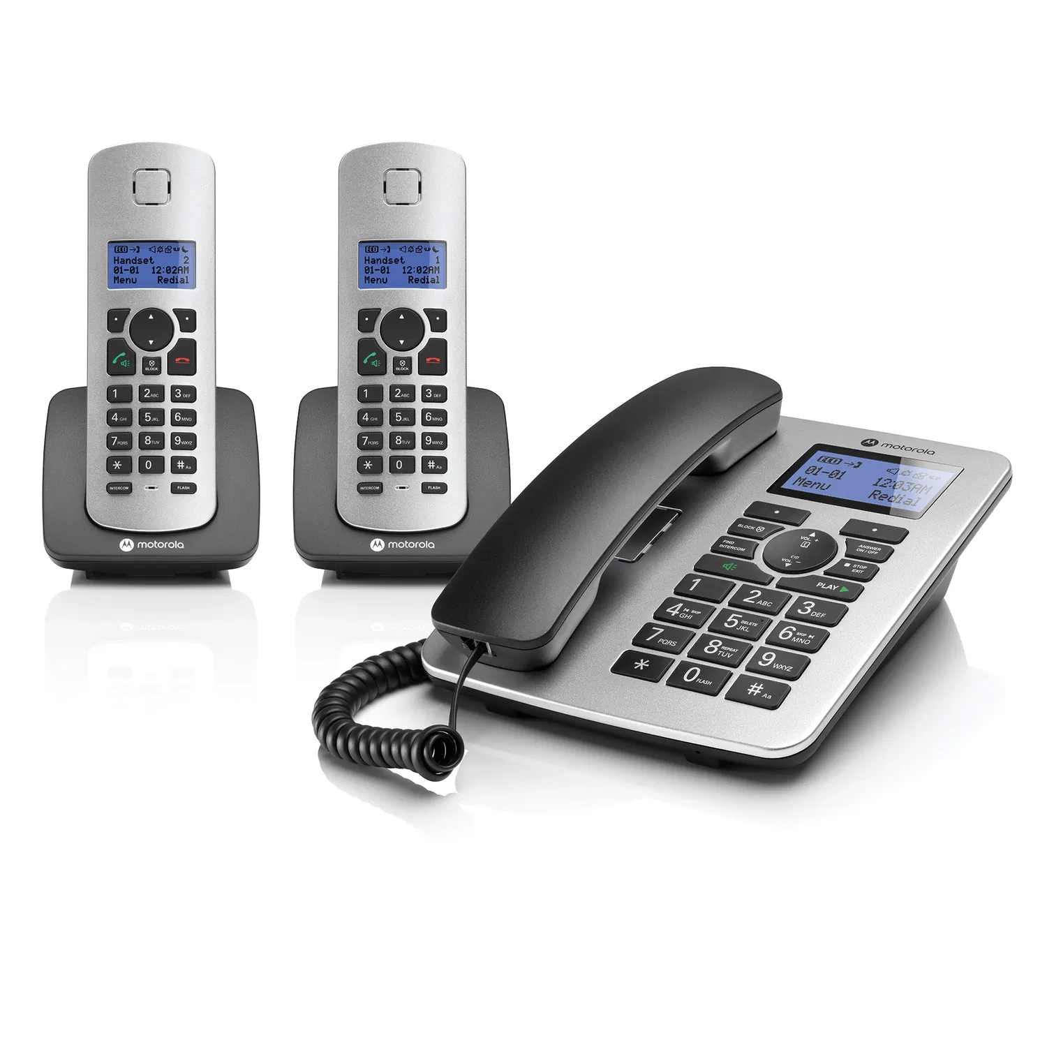 MOTOROLA(R) C4202 Corded and Cordless Phone with Caller ID, Answering System, and 2 Cordless Handsets