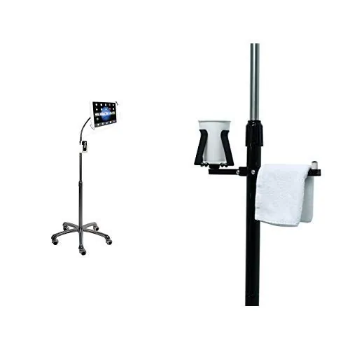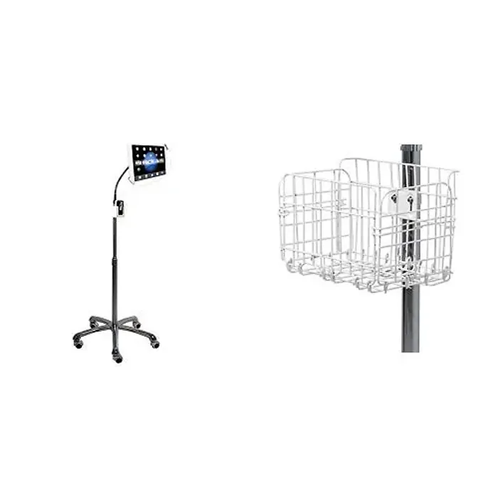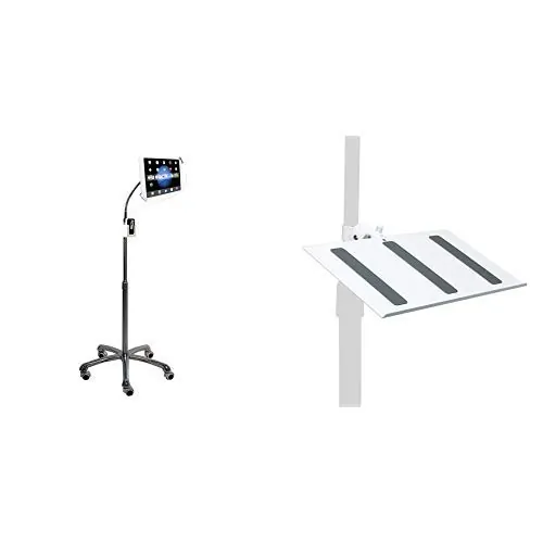 Make any room a protected digital workstation with CTA Digital's Heavy-Duty Security Gooseneck Floor Stand. This ultradurable rolling floor stand gives you access to your tablet at virtually any angle with a telescoping, height-adjusting pole and flexible aluminum gooseneck. Also included is an attachable multipurpose storage cradle, which is perfect for an external battery pack or a stack of business cards. The slide-open tablet holder tilts side to side and rotates 360?, easily accommodating portrait or landscape orientations and securing your tablet with a powerful lock and key mechanism. The optional 5 swivel casters attach to the chrome-plated stand base, making moving this stand a breeze. Exceptional flexibility, security, adjustability and mobility make this tablet stand a welcome addition to any living room, study, doctor's office, classroom or trade show.