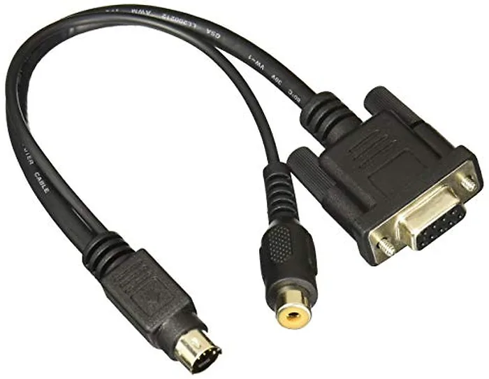 This CVBS/RS-232 cable is designed for use with M-Series, F-Series, CP-Series, and W-Series devices. It provides a reliable connection for video and data transfer, ensuring compatibility and optimal performance.