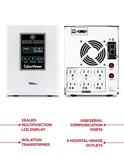 750VA/600W UPS 120V (6) NEMA 5-15R-HG 60601-1 TESTED NEMA 5-15P-HG PLUG 3YR WARR