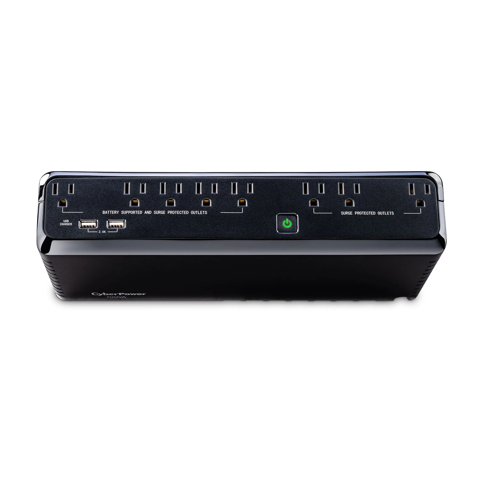 The CyberPower SL700U uninterruptible power supply (UPS) system provides surge protection for lightning-induced surges and other power events that can damage electronic equipment. This unit delivers enough battery backup to connected devices during a utility power failure, so you can perform a graceful shutdown to protect against the loss of data and damage to valuable electronics including computers, gaming consoles, and home networking equipment.