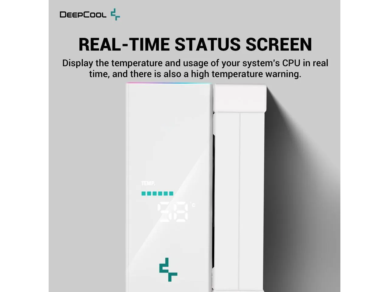 The DeepCool AK400 Digital Air Cooler is designed for gamers and PC enthusiasts who demand exceptional cooling performance. This modern single-tower cooler features a real-time CPU status screen that provides immediate feedback on CPU temperatures and performance.